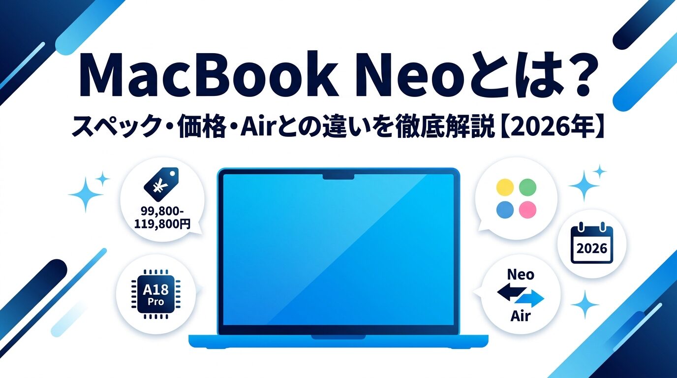 「MacBook Neoって何?」「Appleから格安MacBookが出るって本当?」——そんな疑問を抱えて検索されたのではないでしょうか。