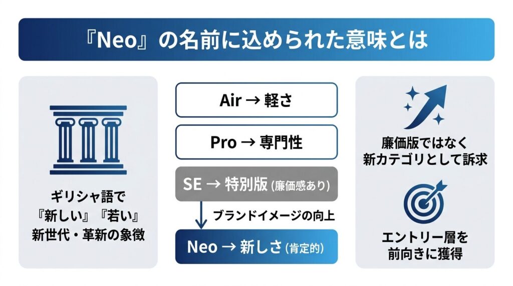 とはいえ、Appleがひとたびメインのプロダクトラインに「Neo」を採用すれば、その名前の印象は大きく塗り替えられるでしょう。「SE=安物感があるので、Neoのほうがマーケティング的にうまい」というRedditの声が、この命名の本質を突いているのかもしれませんね。廉価であることを隠すのではなく、「新しいカテゴリの登場」として肯定的に打ち出すAppleの巧みさが感じられます。PhoneArenaも「MacBook Neoという名称はAppleにとって珍しい命名パターンだが、iPhoneチップ搭載の新カテゴリを差別化する上で巧みな選択」と評価しています。